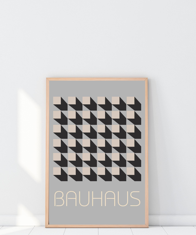Verschönere deinen Raum mit diesem minimalistischen Bauhaus-Ausstellungsposter. Mit mid century inspirierten geometrischen Designs in Schwarz bringt dieses Druck mühelos Stil in jeden Raum. Ideal für Retro-, Mid Century-, skandinavische oder minimalistische Innenräume, verleiht jedem Raum einen Hauch von Stil.